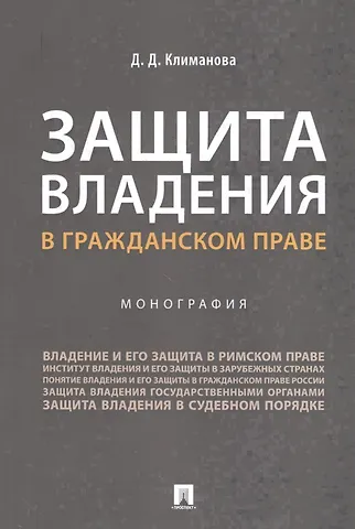 Владение и его защита – один из интереснейших, но в то же время неоднозначных и сложных для понимания институтов гражданского права. Предлагаемая работа представляет собой системное исследование данного явления. В работе на основании изучения отечественного и зарубежного теоретического, правового и эмпирического материала комплексно рассмотрены теоретические и практические проблемы защиты владения, предложены варианты их разрешения. Автором проведен анализ исторического развития института владения и его защиты, исследованы научные позиции о природе владения и его защите, выделены конститутивные признаки и определено понятие владельческой (посессорной) защиты, раскрыта конструкция владения, п