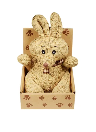Зайка вязаный с бантиком темно-коричневый в крафт коробке (12-01570-С6)