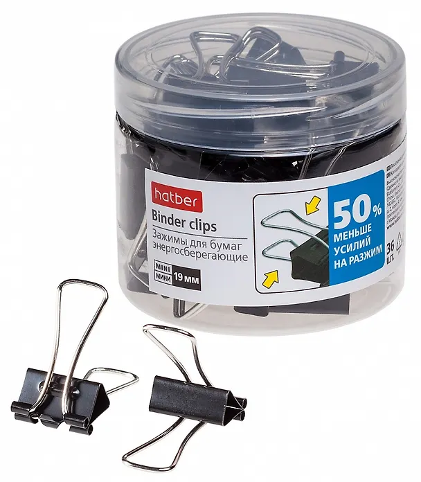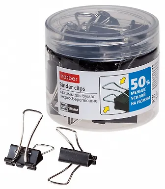 Зажимы для бумаг 19мм 36шт черные, пласт/уп, Hatber