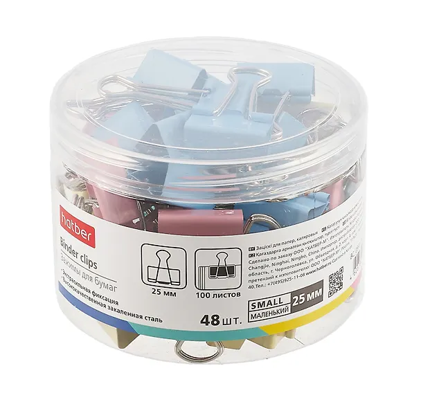Зажимы для бумаг 25мм 48шт цветные, пласт/уп, Hatber