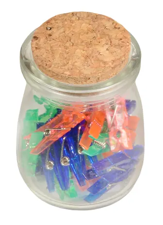 Зажимы для бумаг 32мм 30шт "Прищепки" неон, стекл.банка, Alldo