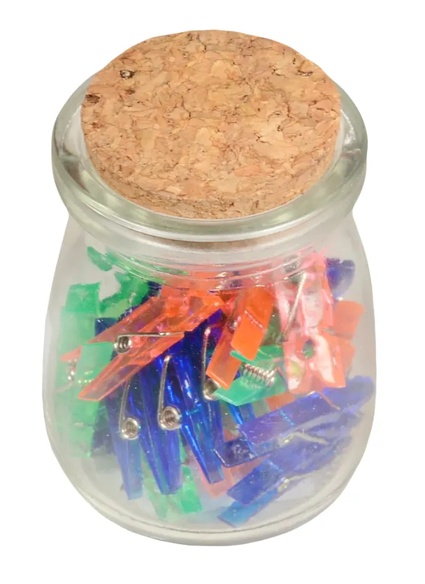 Зажимы для бумаг 32мм 30шт "Прищепки" неон, стекл.банка, MUST HAVE!
