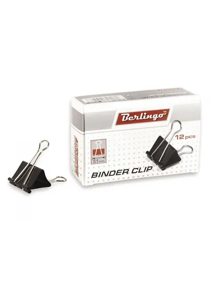 Зажимы для бумаг, 12 штук, 51 мм, черные, картонная коробка, Berlingo