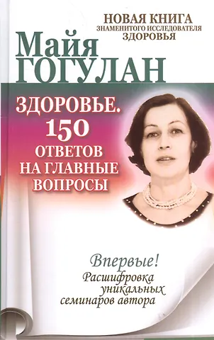 В этой книге - ответы на 150 вопросов по системе оздоровления, которой следовала Майя Гогулан и сотни тысяч ее последователей. Эти ответы помогут всем, кто идет по Пути здоровья, всем, кто хочет жить долго, интересно.