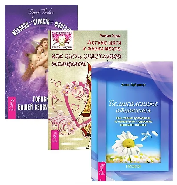 Вашему вниманию предлагается комплект из 3 книг "Желания. Страсти. Легкие шаги к жизне-мечте. Великолепные отношения".
