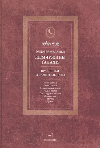 В этом томе "Жемчужин" подробно изложены законы новомесячья, Хануки, Пурима, счета омера, Дня независимости Израиля, Лаг ба-омера, Дня Иерусалима, постов и траурных дней и раскрыт смысл перечисленных праздников и памятных дат. Правила проведения этих дней разъясняются равом Элиэзером Меламедом подробно, доступно и с особым отношением к Стране Израиля как центру еврейского существования. Любой читатель, который хочет знать, как отмечать их, в чем смысл наших действий, во имя чего и во имя Кого мы их совершаем, найдет в "Жемчужинах Галахи" исчерпывающие ответы на свои вопросы.