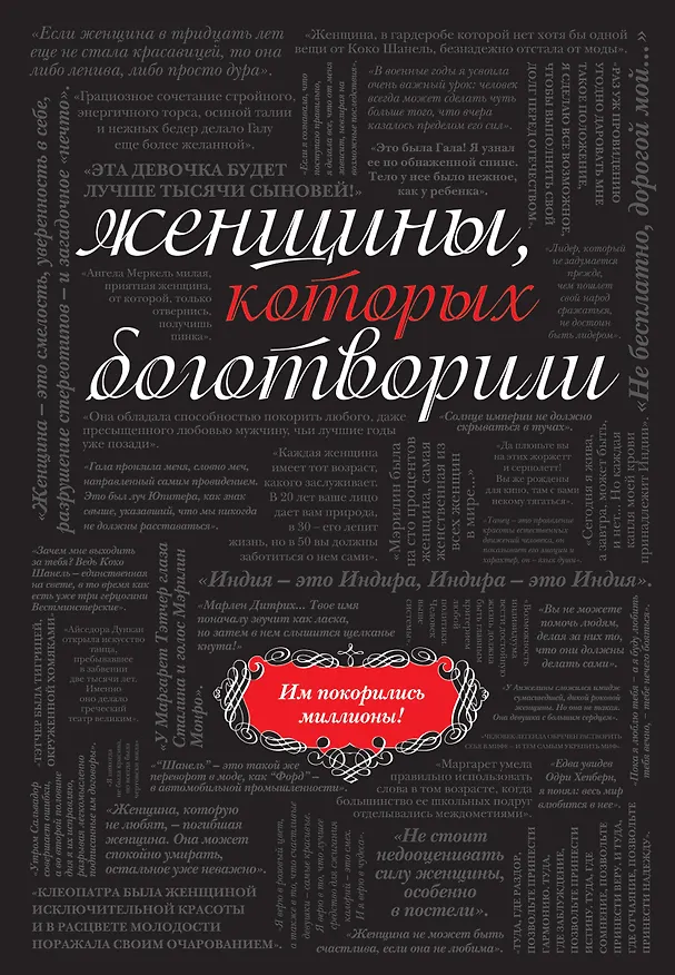 В этой книге содержатся истории жизни великих женщин, незаурядных, боготворимых, вызывающих восхищение. Королева Виктория, Анджелина Джоли, Одри Хепберн, Ангела Меркель, Фаина Раневская и другие известные представительницы прекрасной половины человечества предстают на разных этапах своего жизненного пути: в периоды взлетов и падений, в моменты принятия судьбоносных решений и случайных подарков судьбы. Каждая из этих женщин уникальна и неповторима, каждая достойна самых громких и восторженных эпитетов, имя каждой известно миллионам. Актрисы и балерины, политики и особы королевской крови, все они достигли высочайших вершин в исполнении своего предназначения.