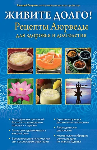 Живите долго Рецепты Аюрведы для здоровья и долголетия. Я хожу с ребенком в детский клуб. И у нас продвинутые мамочки- йога, аюрведа и так далее. Даже проводят семинары. Вот на токам семинаре я эту книгу и увидела, купила из любопытства. Владимир Полунин доступно описывает различные методики, некоторые очень простые, некоторые сложные. Кое что мне уже известно из семинара. Очень понравилась диета, масляный массаж и кое- какие рецепты для поддержания иммунитета и бодрости. Советую!