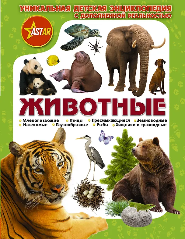 Животные: мохнатые, пернатые, чешуйчатые - вызывают у всех огромный интерес. Хотите узнать побольше о наших соседях по планете? Кто-то из них давно живет рядом с нами и хорошо нам знаком. А кто-то находится на грани вымирания и нуждается в нашей защите. Откройте страницы нашей энциклопедии — и вас поприветствует рычанием сам царь зверей — лев, а слон и носорог предложат принять участие в совместной прогулке, коммодский варан и королевская кобра попытаются напугать и даже укусить, а ящерицы и крокодил весело застучат хвостами. И все они предстанут перед вами в объеме и движении. Вам нужны лишь наша книга, смартфон или планшет с установленным бесплатным мобильным приложением ASTAR, и — желание