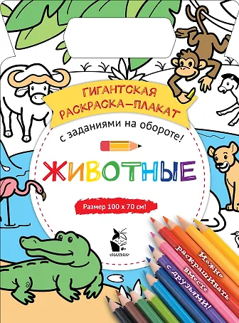 Границы для творчества и воображения расширяются! Нет скучным раскраскам за столом, да - совместному веселью и полету фантазии! Разложи эту гигантскую раскраску-плакат на полу, приготовь карандаши, фломастеры и краски, позови друзей – и вперед! Отправьтесь в экзотические страны и раскрасьте удивительных животных, не упустив ни одной детали. Не забудь перевернуть раскраску и выполнить все веселые задания на обороте!