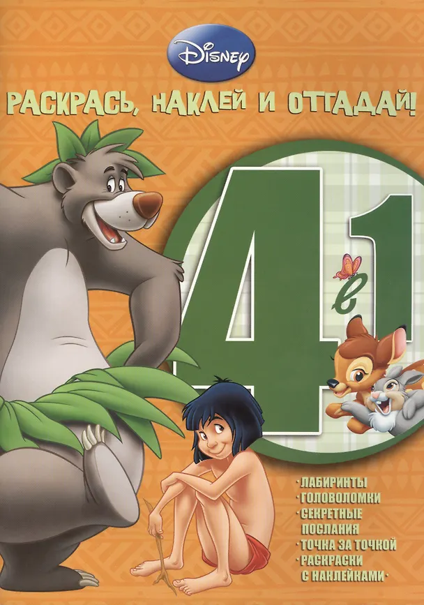 Животные Дисней. РНО 4-1 № 1205. Раскрась наклей и отгадай!. 4 в 1.