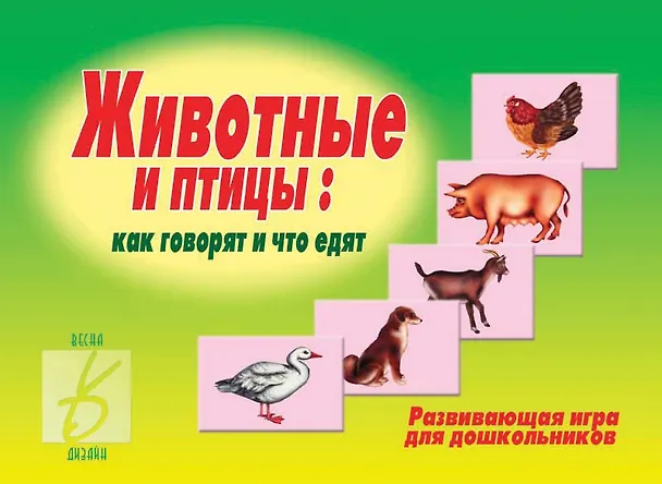 Развивающая игра-лото как говорят и что едят" знакомит с птицами и животными, способствует развитию речи.