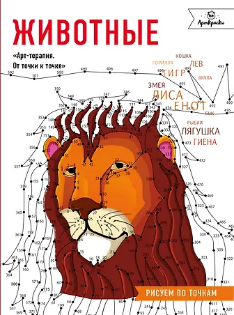 Книга по точкам мне понравилась, картинки выполняются быстро, минут 10-15 уходит на одну, периодически нужно подумать- поискать нужную точку. Животные все разные, не повторяются, все подписаны. Часто встречаются лишние или дублирующиеся точки, я полагаю опечатки. А также была страничка, где были проставлены цифры, а точек не было, думаю тоже опечатка. Печать односторонняя, картинок всего 23.