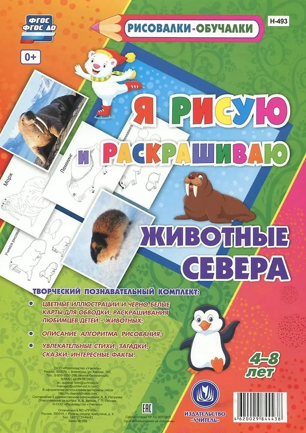 Творческий комплект рисовалок-обучалок "Мир животных" для детей 4-8 лет представлен цветными и черно-белыми картами с описанием алгоритма рисования животного и увлекательного материала (стихи, загадки, сказки, интересные факты) о нем. Предложены красочные изображения восьми животных - любимцев детей, о которых они узнают много нового и с удовольствием выполнят рисунки, лепные изделия, аппликации на примерах предложенных шаблонов. Предназначено: воспитанникам ДО, ученикам начальных классов ОО.