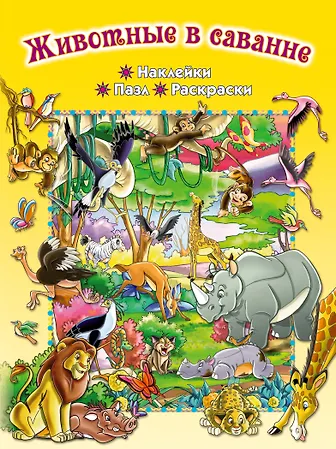 Удивительная книга! Под одной обложкой забавный рассказ про животных, красочные большие и маленькие наклейки, картинки для раскрашивания. А на последней странице - сюрприз: большой паззл!