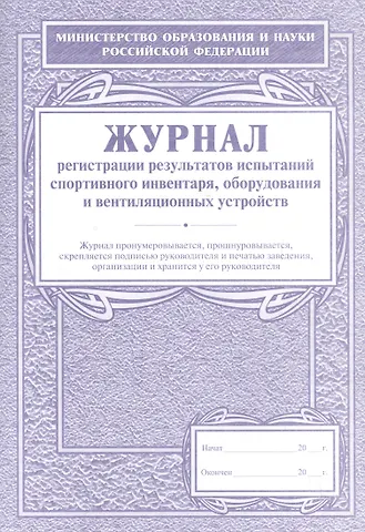 Журнал регистрации результатов испытаний спортивного инвентаря, оборудования и вентиляционных устройств