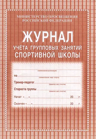 Журнал учёта спортивных групповых занятий в организации является основным документом по учёту работы учебно-тренировочной группы и тренера-преподавателя, отражает выполнение учебной программы, успеваемость и посещаемость обучающихся (спортсменов). Ведение журнала является обязательным для каждой учебной группы в течение учебного года. Кроме того, систематическое заполнение тренером-преподавателем журнала гарантирует полную и объективную диагностику показателей обучающихся (спортсменов), сбор, контроль и анализ нормативно-статистических данных. Адресован тренеру-преподавателю, заместителю директора спортивной организации.