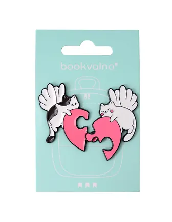 Значки парные Котики с крыльями и сердечком-пазлом (2 шт) (металл) (12-5769-A37)