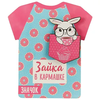 Значок ооочень необычного дизайна! Милый и модный. По форме точно как маленький корманчик. На значке по мимо основных элементов ещё и дорисован милый кексик, что тоже подчёркивает необычность и притягивает к покупке данного значка. Рисунок на значке из качественной наклейке, очень яркий и глянцевый. Обратная сторона деревянная. Застёжка на значке крепко приклеина.