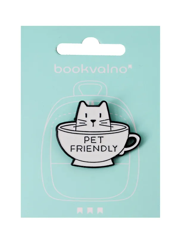 Значок Котик в чашке Pet friendly (металл) (12-5769-A9)