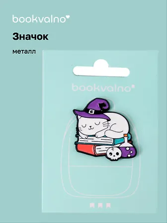 Красивый металлический значок, отлично передающий любовь к чтению книг, к котикам, а также к чему-то волшебному и магическому. Рисовка красивая, приятные цвета. Все линии прорисованы чётко. Хорошая и удобная застёжка в виде иголки с крепким держателем. Это плюс, потому что можно не переживать, что значок отстегнется и где-то потеряется. По размеру сам значок тоже удобный. Можно и на одежду и на рюкзак нацепить.