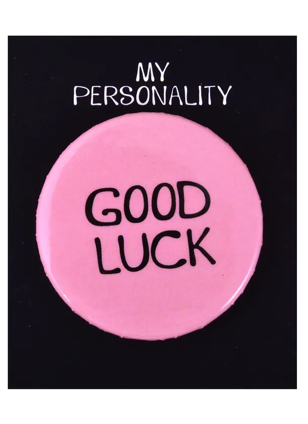 В мою коллекцию круглых значков с надписями - манифестами данный значок вошел, естественно, из-за надписи - пожелания, которое может пригодиться во многих ситуациях, и из-за прекрасного оттенка розового цвета, который, на мой взгляд, не является слишком слащавым и может внести приятное разнообразие в повседневные образы.