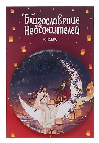 Мне понравился значок с любимыми персонажами из новеллы "Благословение небожителей". Достаточно крупный и яркий, украшен радужным покрытием с узором в виде звездного неба. Арт на нем яркий и четкий, атмосферный, с красивыми деталями и хорошей печатью. Застежка на обратной стороне классическая, удобная, для одежды, наверное, значок тяжеловат. Внешне выглядит очень красиво и эстетично, подойдет для подарка. Упакован в пакетик, так что нет царапин и потертостей