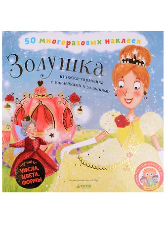 .В интерактивной книжке-раскладушке - веселые задания с виниловыми наклейками. Сколько у Золушки было сестер? Найди среди наклеек двоечку и приклей вместо ответа. Какого цвета фартук у Золушки? Выбери наклейку с правильным цветом.