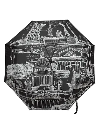 Зонт складной полуавтомат СПб. Коллаж, черн.