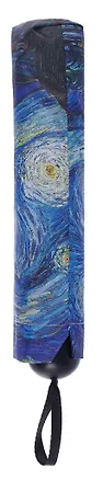 Прекрасный зонт, сделанный в оригинальном и стильном дизайне. Я поклонница творчества Винсента Ван Гога, особенно люблю картины "Звездная ночь" и "Ветви миндаля". Из представленных зонтов, мой выбор пал на зонт с принтом Звездной ночи, мне очень понравилось как он выглядит. Зонт небольшого компактного размера, но довольно широкий. Он отличного качества, сделан из плотного, хорошо защищающего от дождя материала, капли с которого отлично стекаются и он сильно не намокает. Принт на зонтике яркий и красочный. Пользуюсь данным зонтом с огромным удовольстаием, покупкой очень довольна, она стоит своих денег. Рекомендую к приобретению!