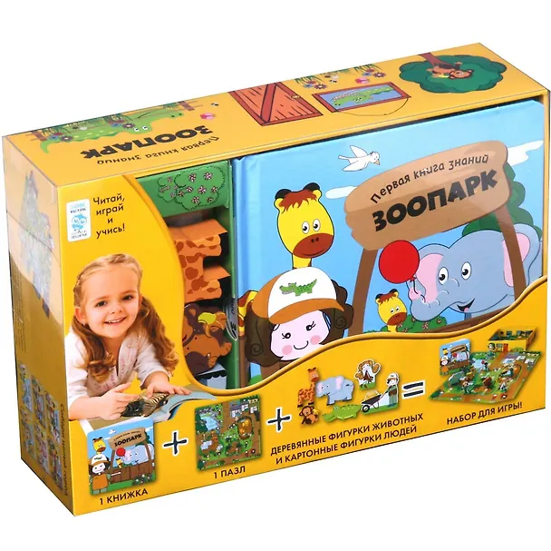 Собираю всю серию развивающих наборов «первая книга знаний». Очень жаль, что больше не выпускают, приходится искать по остаткам в магазинах. Первая книга знаний - это не просто книга, а полноценный набор для игры и развития ребёнка. Очень удобно, что игровые поля можно совмещать и собрать мини-городок.