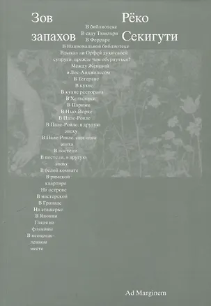 «Мир состоит из головокружительного движения запахов». Люди, животные, растения, вещи, воспоминания — всё складывается в ольфакторный орнамент, проходящий через наши жизни и связывающий их между собой. В своем новом тексте (2024) японская писательница Рёко Секигути открывает для нас дневник запахов — истории нескольких женщин разных стран и эпох, рассказанные через призму их обонятельных впечатлений. Новеллы чередуются с цитатами из книг и размышлениями о семиотической роли запахов, вопросами о свойствах и возможностях душистых молекул: чем пахнет тайна? Есть ли аромат тени? А расставания? Найдем ли мы запахи тех, кого когда-то знали и любили? Секигути рассматривает запах не только как «прод